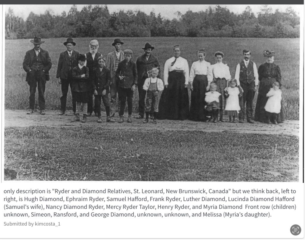 George had with him his wife, Lucinda (Diamond) Moir, who along with her three sisters, were instrumental in settling the town of Allagash. -Trevor O’Leary - 2015
